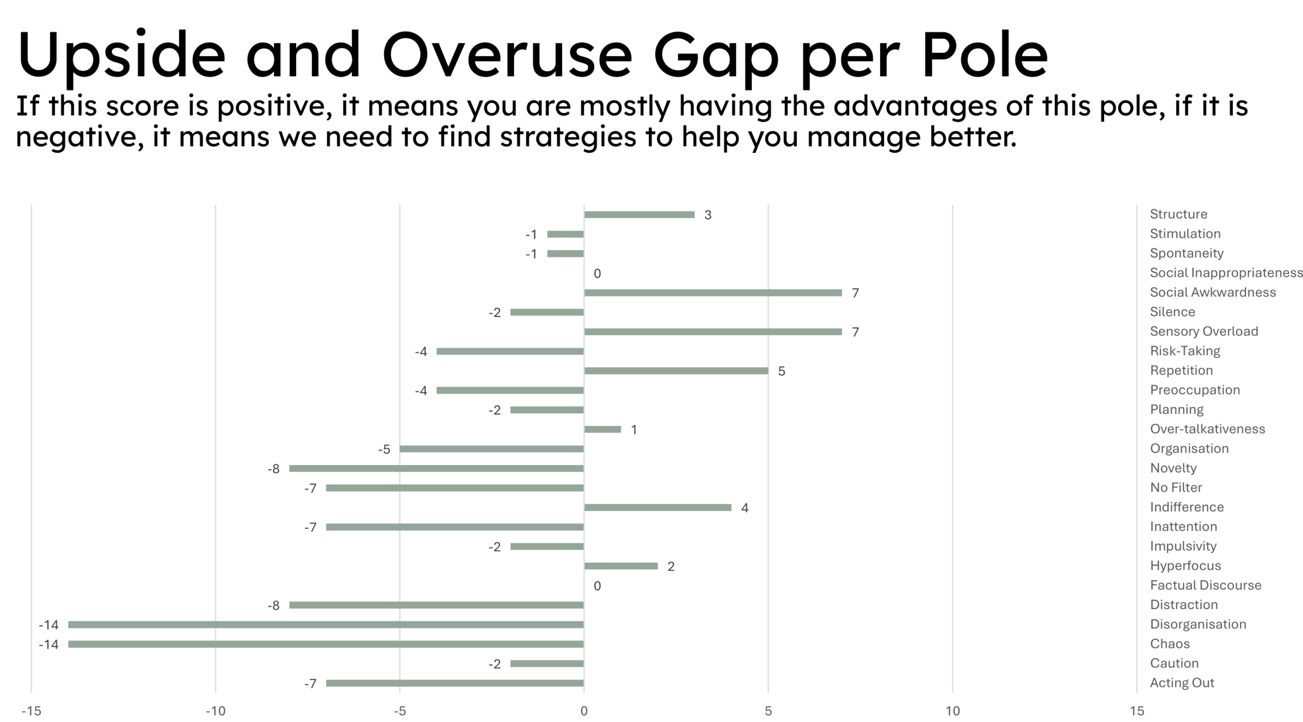 Through the assessment, you begin to identify the key tensions, or “polarities”, that show up in your daily life, such as rest and activity, structure and spontaneity, or logic and intuition.